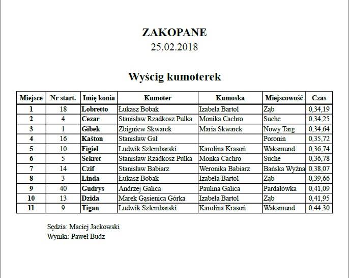 Wyniki z wyścigu kumoterek, ski-skiringu, skiringu.